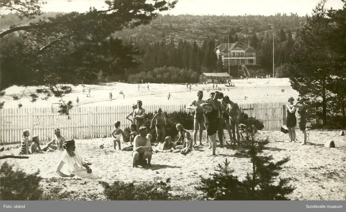 Vykort med motiv över Badhotellet vid Fläsians havsbad utanför Sundsvall.