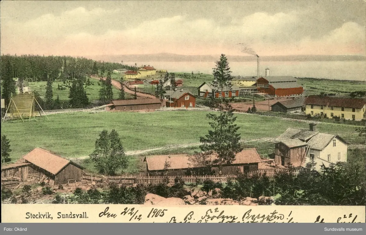 Vykort med motiv över ett parti av Stockvik i Sundsvall.