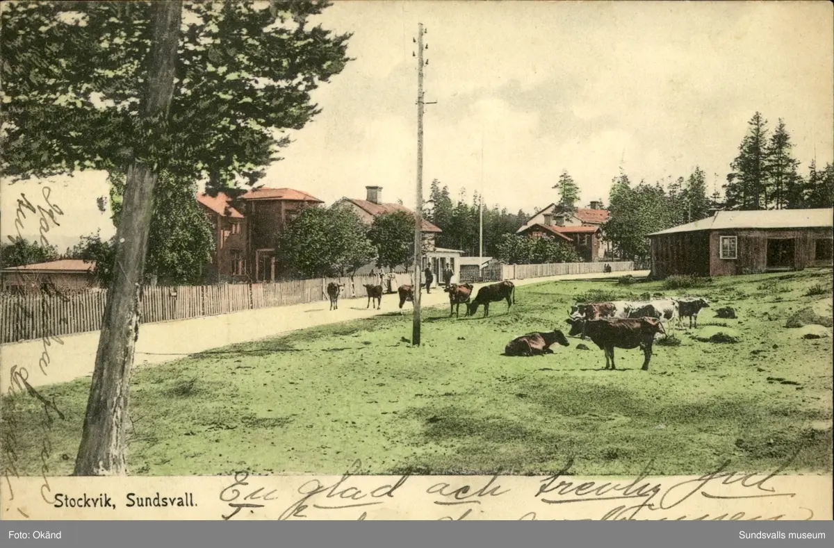 Vykort med motiv över ett parti av Stockvik i Sundsvall.