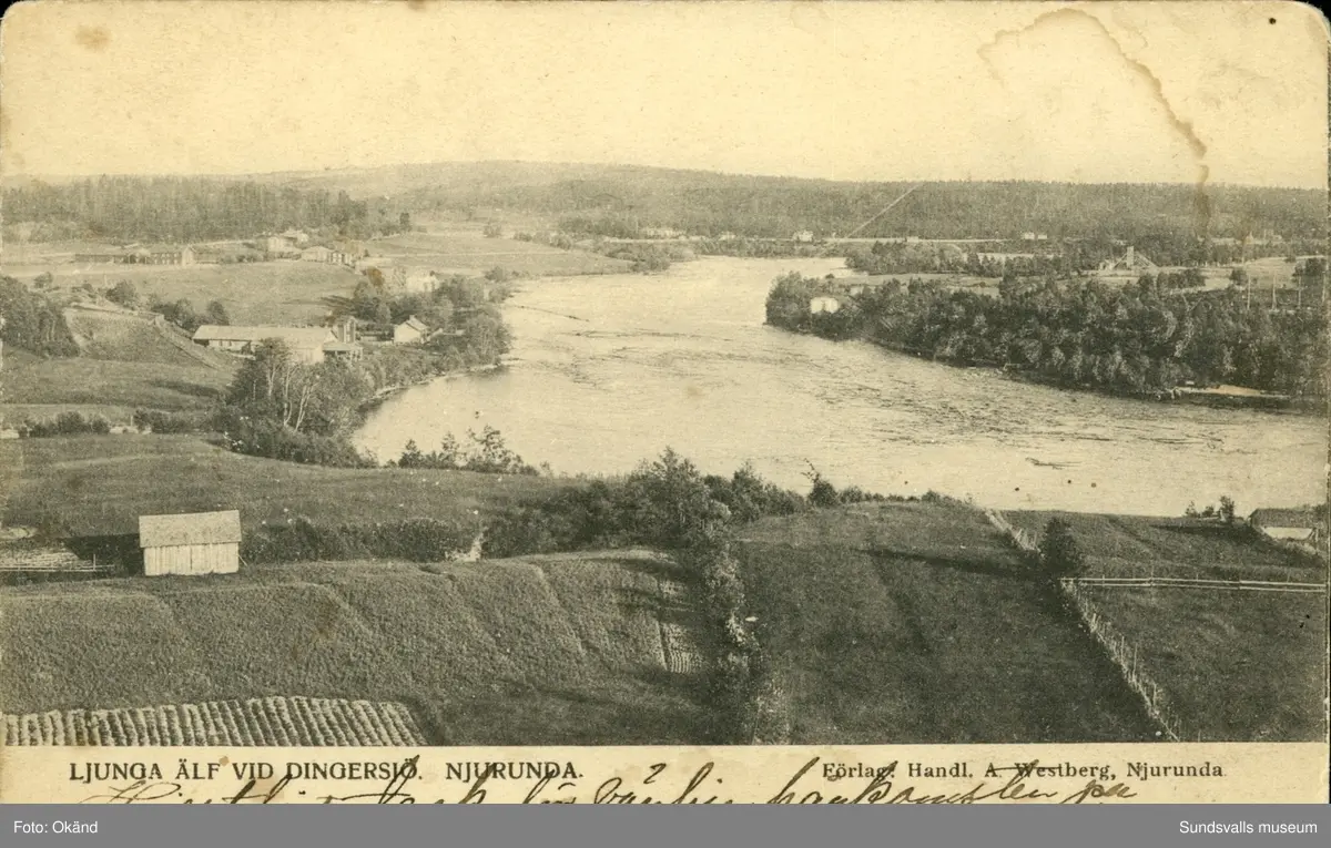 Titel: Vykort med motiv över Ljungan vid Dingersjö i Njurunda utanför Sundsvall.