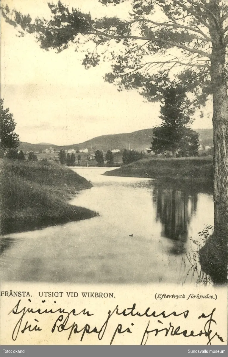 Vykort med motiv över utsikten från vikbron i Fränsta.