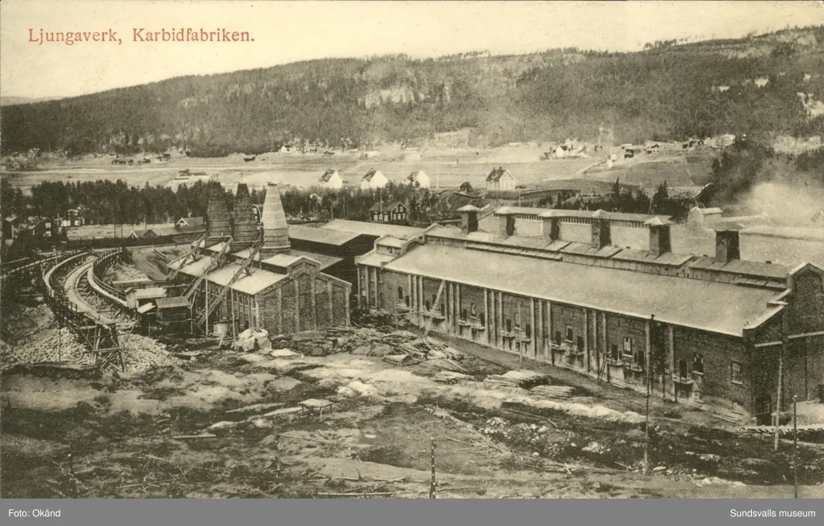 Vykort med motiv över karbidfabriken i Ljungaverk.