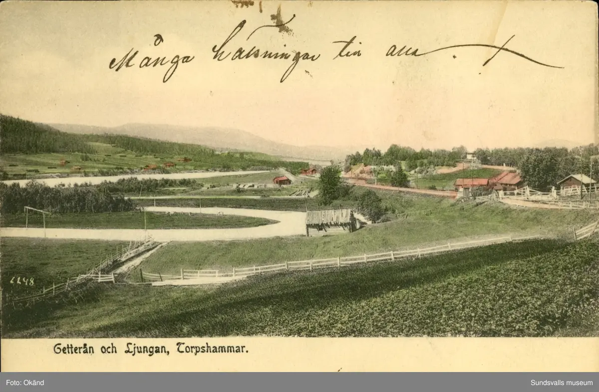 Vykort med motiv över Getterån och Ljungan Torpshammar..