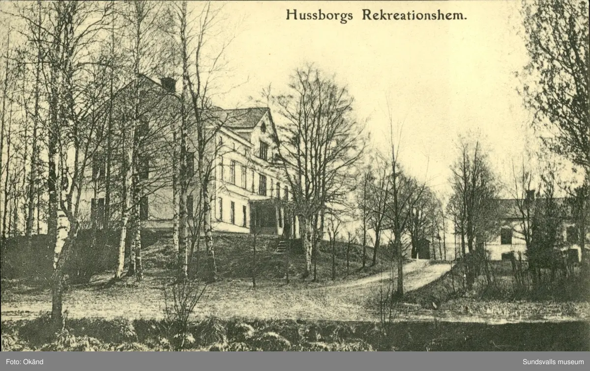 Vykort med motiv över Hussborgs rekreationshem i Ljungaverk. Post- och brevdaterat 1906.