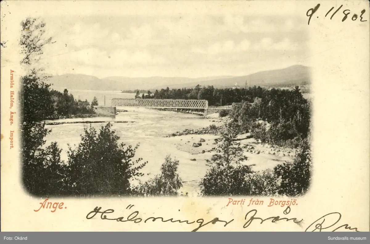 Vykort med motiv över parti av Borgsjö i Erikslund.