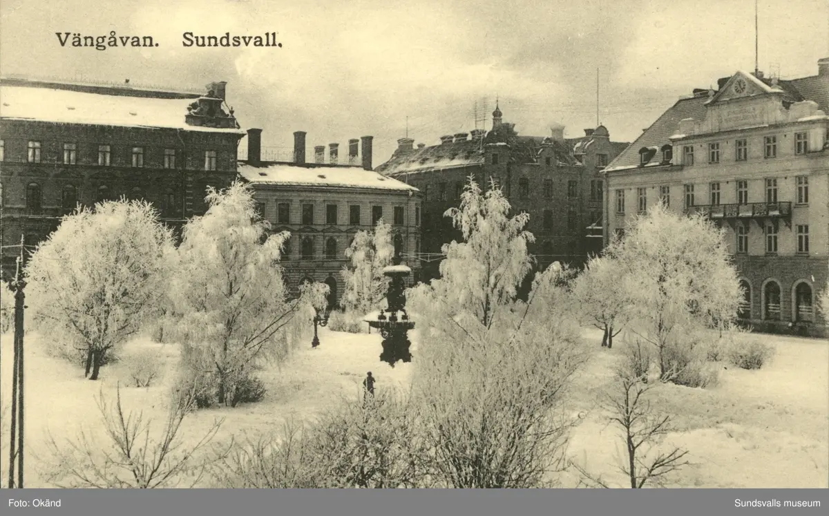 Vykort med vintermotiv över Vängåvan i Sundsvall.