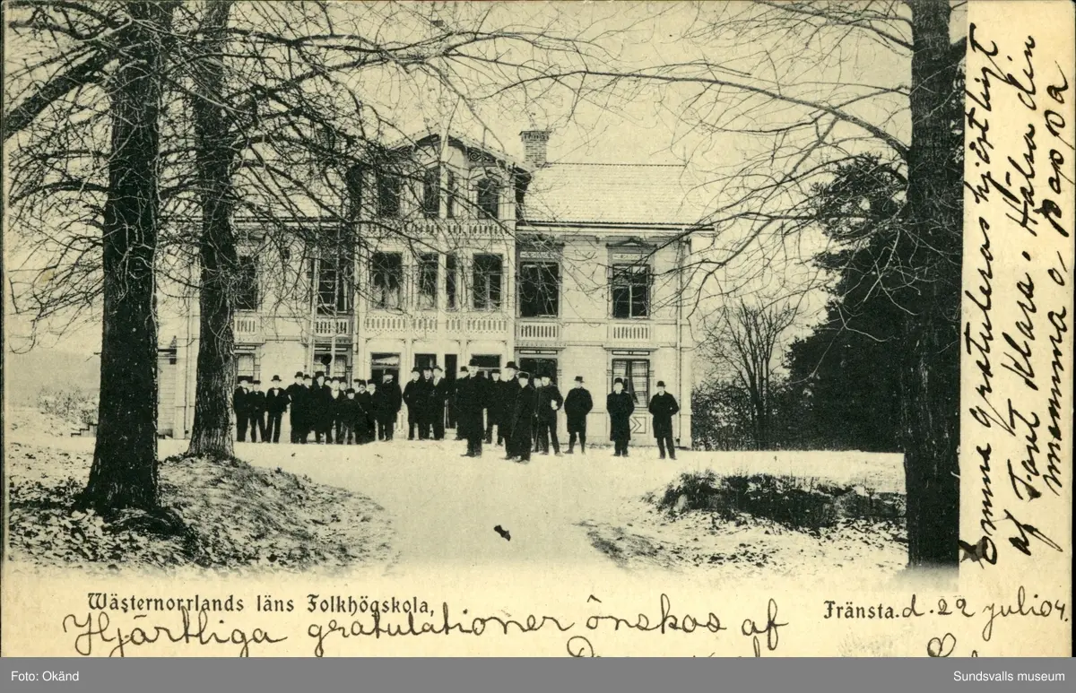 Vykort med motiv över Folkhögskolan i Fränsta.