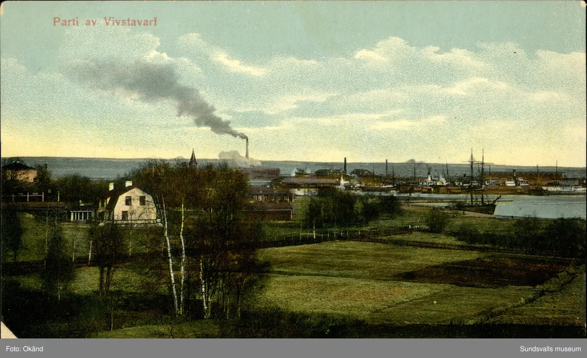 Vykort med motiv över parti av Vivstavarv i Timrå.