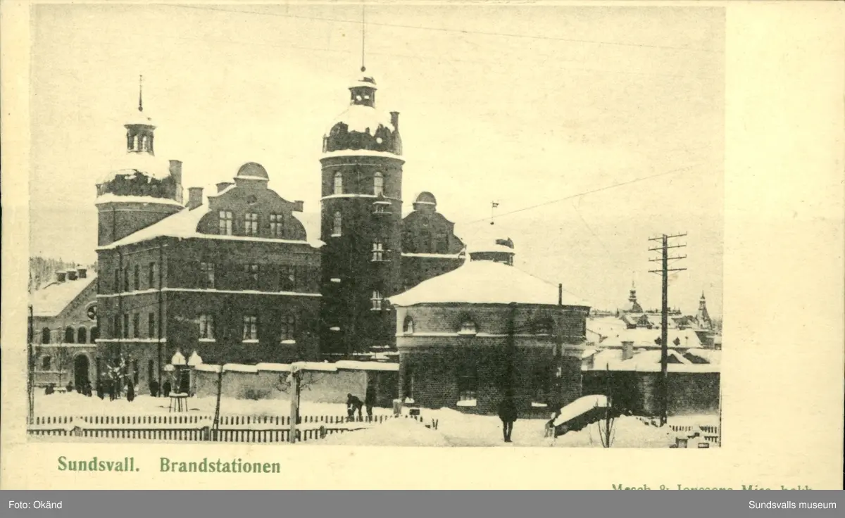 Titel: Vykort med motiv över brandstationen i Sundsvall.