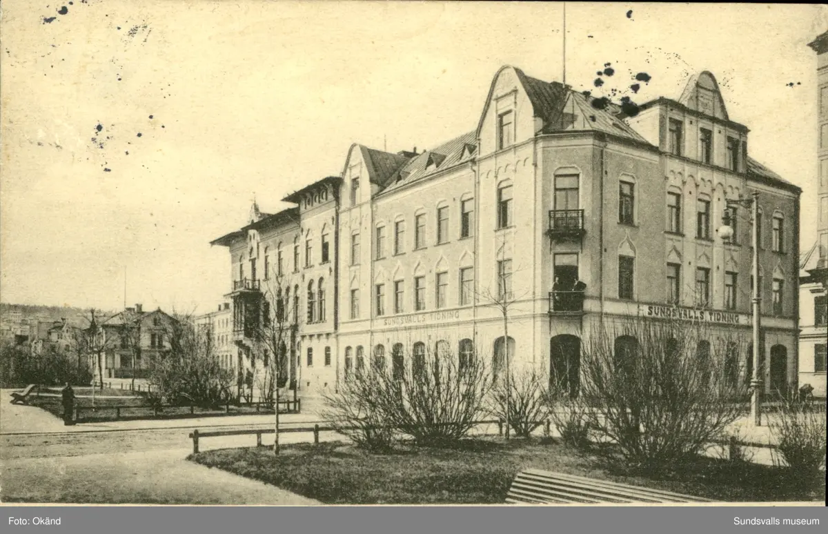 Vykort med motiv över Sundsvalls tidnings V. konsul Gregor Vikströms hus i Sundsvall.
