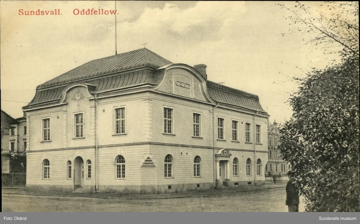 Vykort med motiv över Oddfellow-huset i Sundsvall.