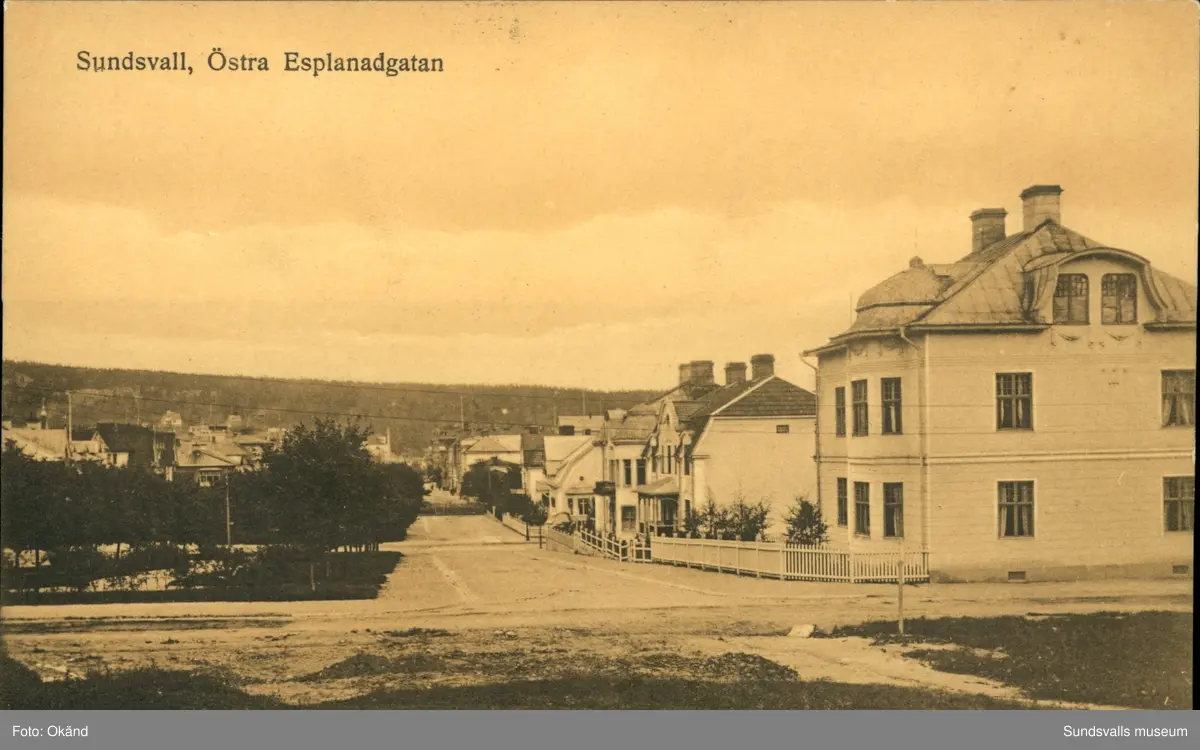 Vykort med motiv över Östra Esplanadgatan i Sundsvall.