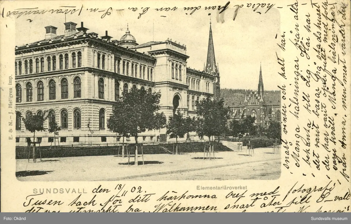 Vykort med motiv över Elementärverket för flickor i Sundsvall.