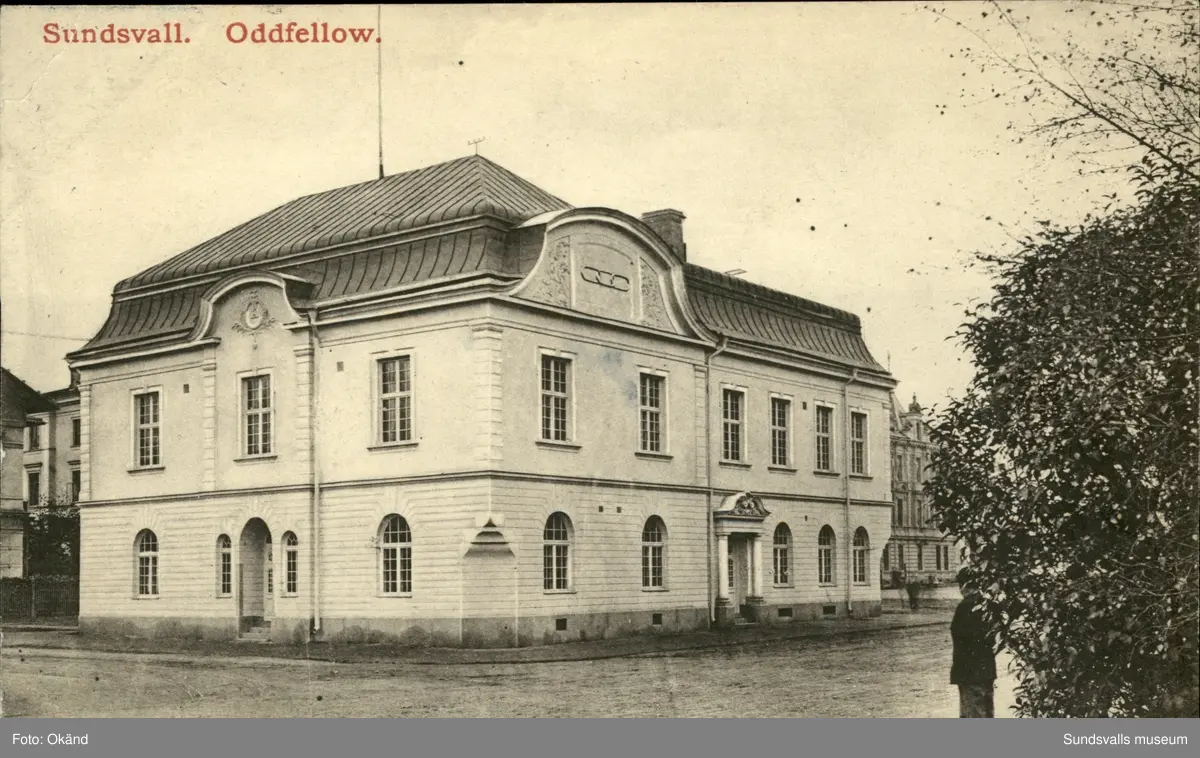 Vykort med motiv över Oddfellow-huset i Sundsvall.
