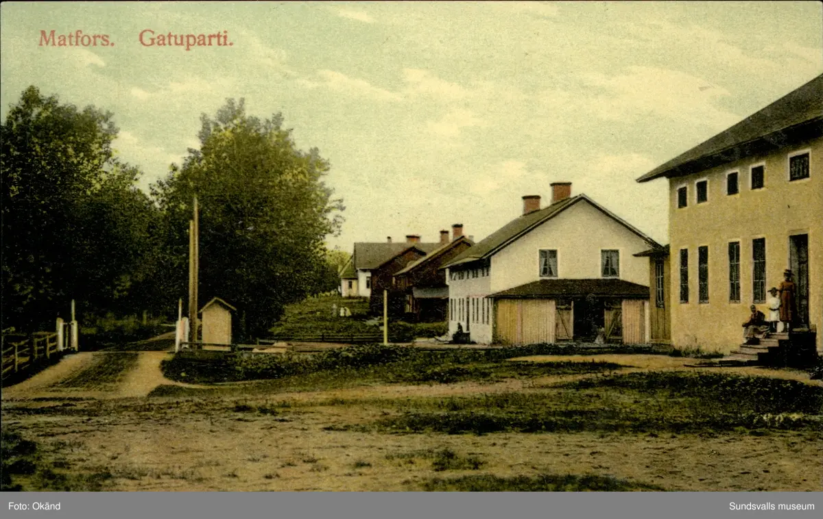 Vykort med motiv över gatuparti Matfors.