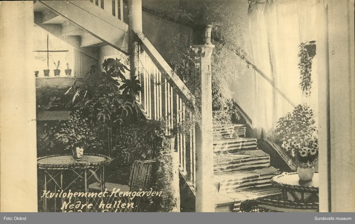 Vykort med motiv av nedre hallen i vilohem Fridhem i Stöde.