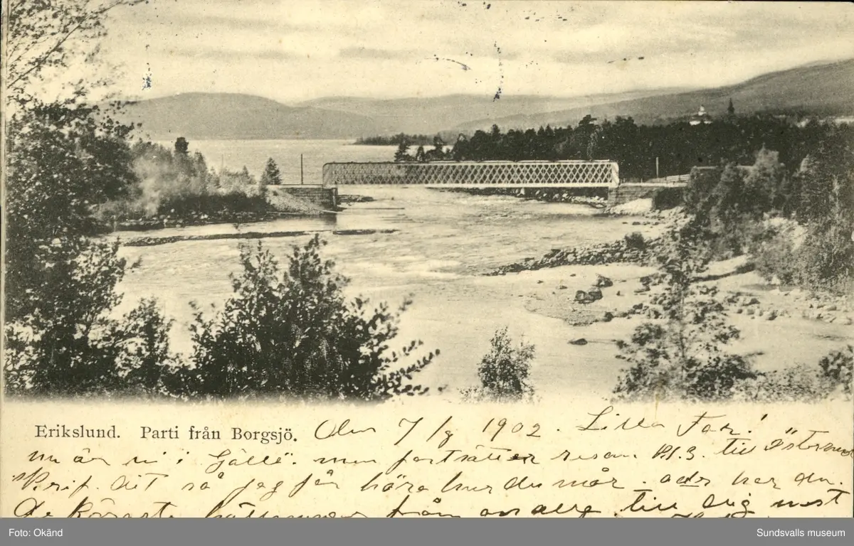 Vykort med motiv över parti av Borgsjö i Erikslund.