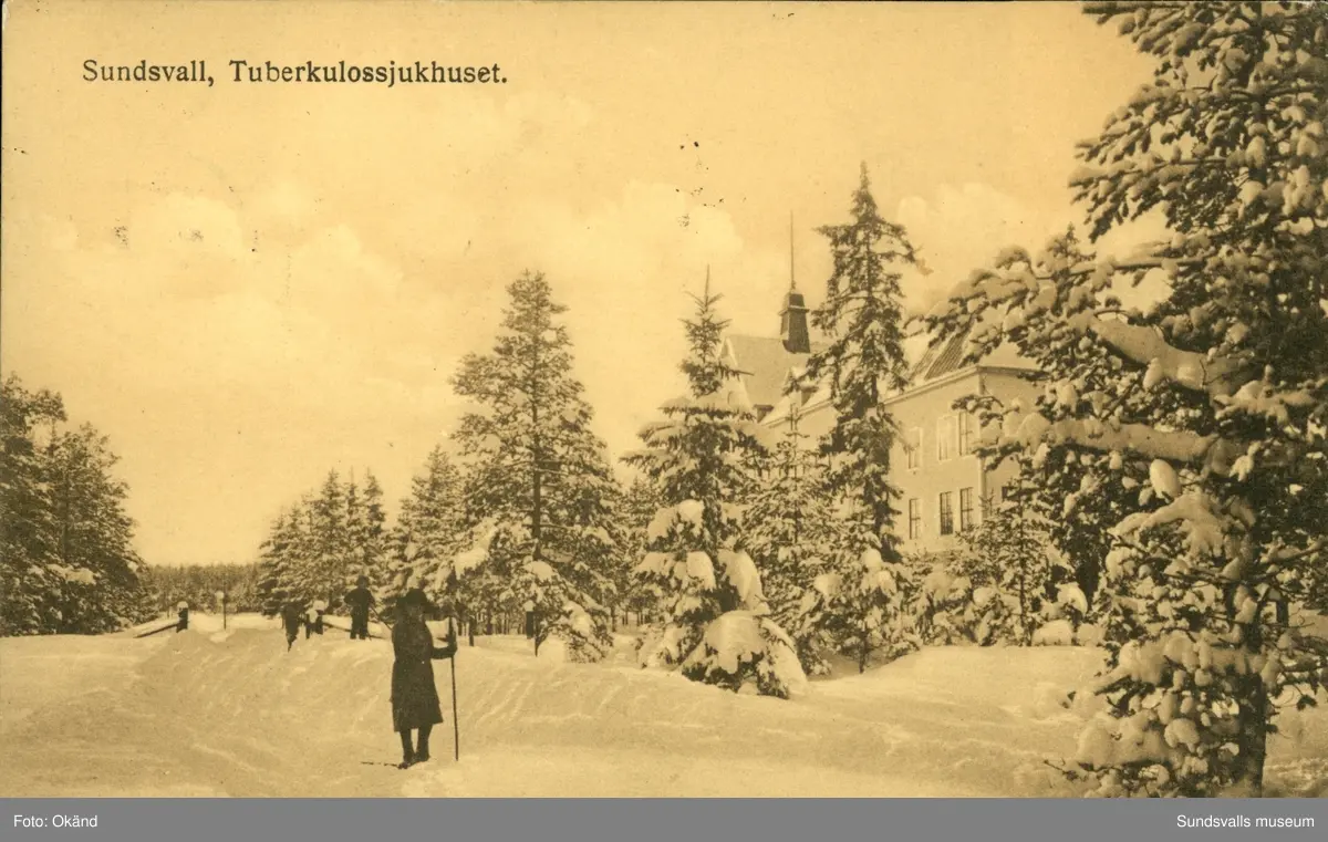 Vykort med vintermotiv vid Tuberkulossjukhuset i Sundsvall.