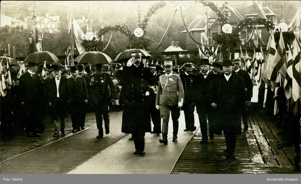 Vykort med motiv av Kung Gustav V besök vid Skönvik utanför Sundsvall.