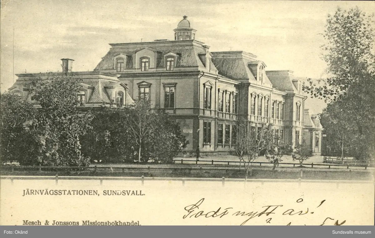 Titel: Vykort med motiv över järnvägsstationen i Sundsvall.