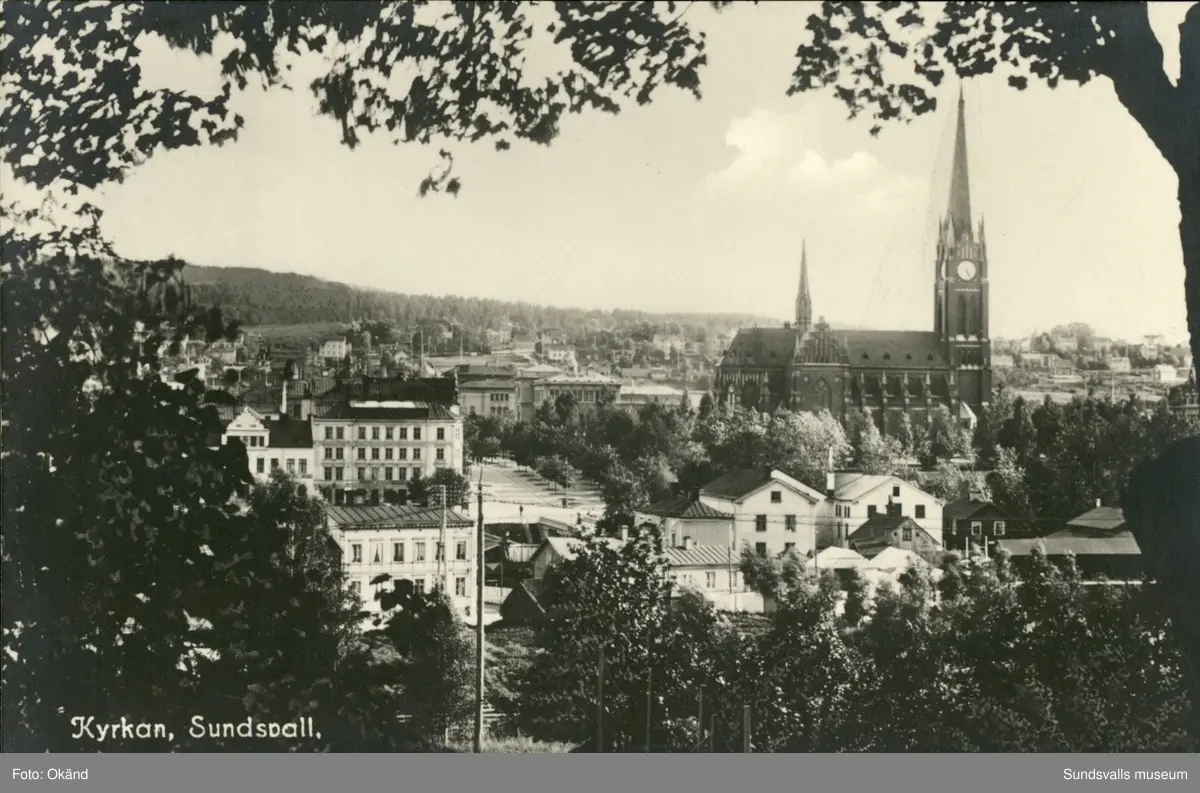 Vykort med motiv över Gustav Adolfs kyrka.