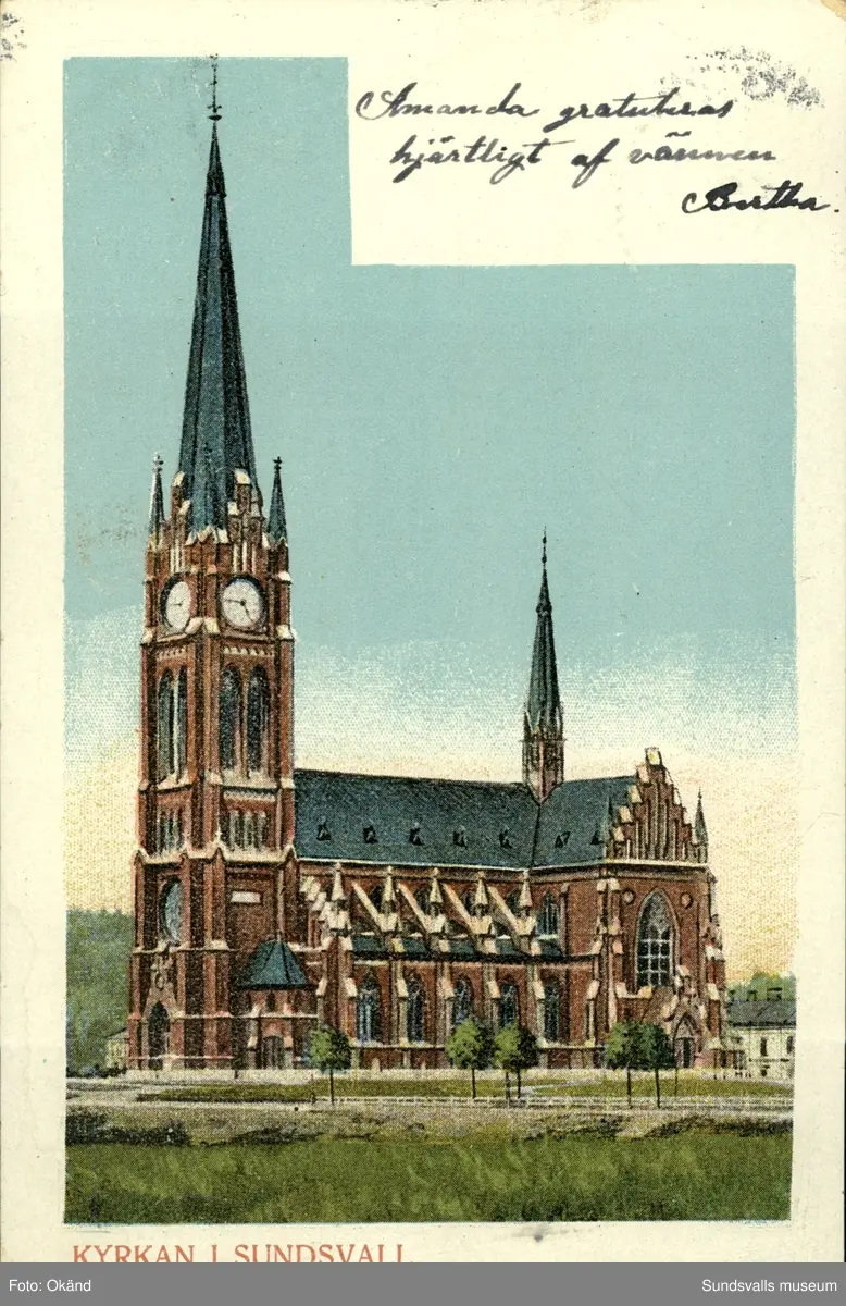 Vykort med motiv över Gustav Adolfs kyrka.