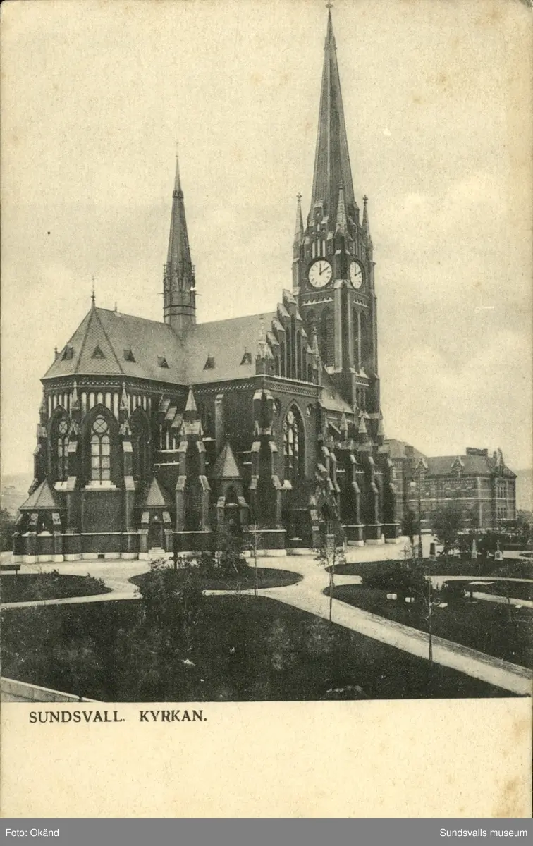 Titel: Vykort med motiv över Gustav Adolfs kyrka.