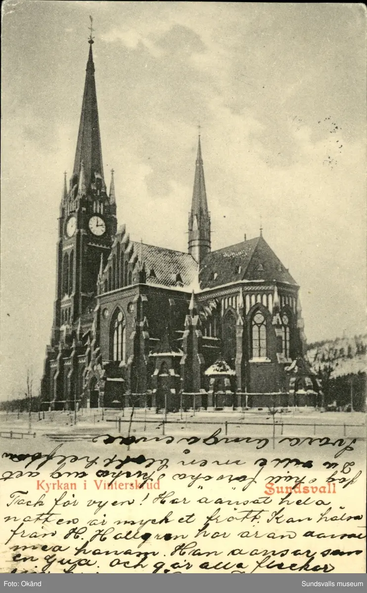 Vykort med motiv över Gustav Adolfs kyrka.