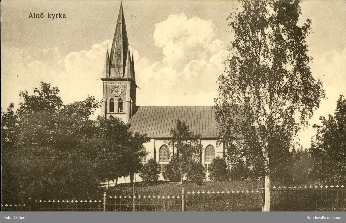 Titel: Vykort med motiv över kyrkan på Alnö.