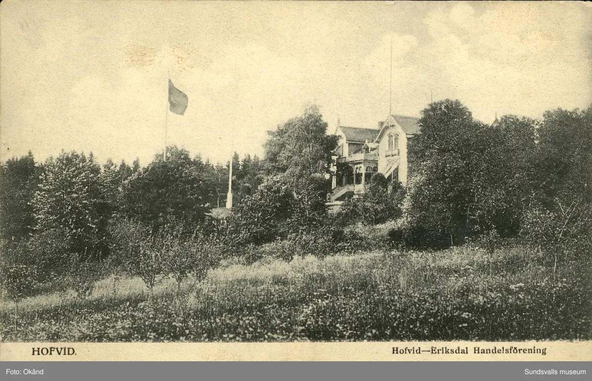 Vykort med motiv över herrgården vid Hovid på Alnö.