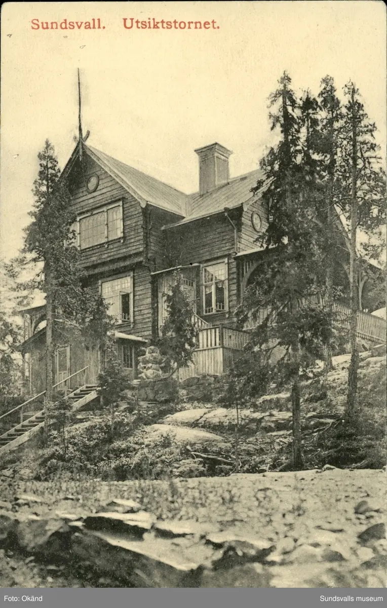 Vykort med motiv av Utsiktstornet i Sundsvall.