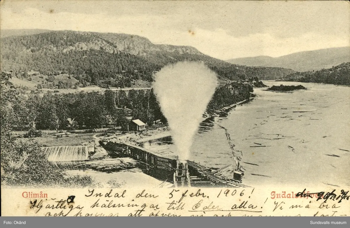 Titel: Vykort med motiv över Glimånrännan vid Indalsälven.