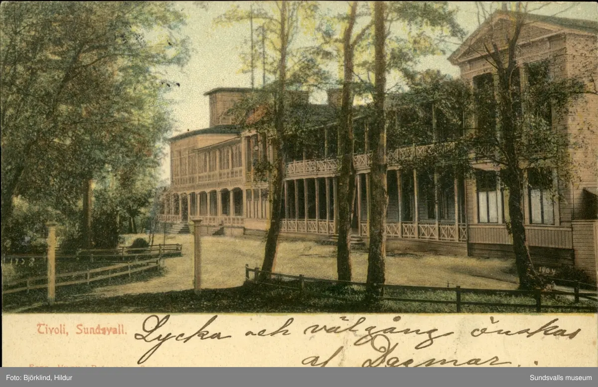 Vykort med motiv över Tivoli i Sundsvall.