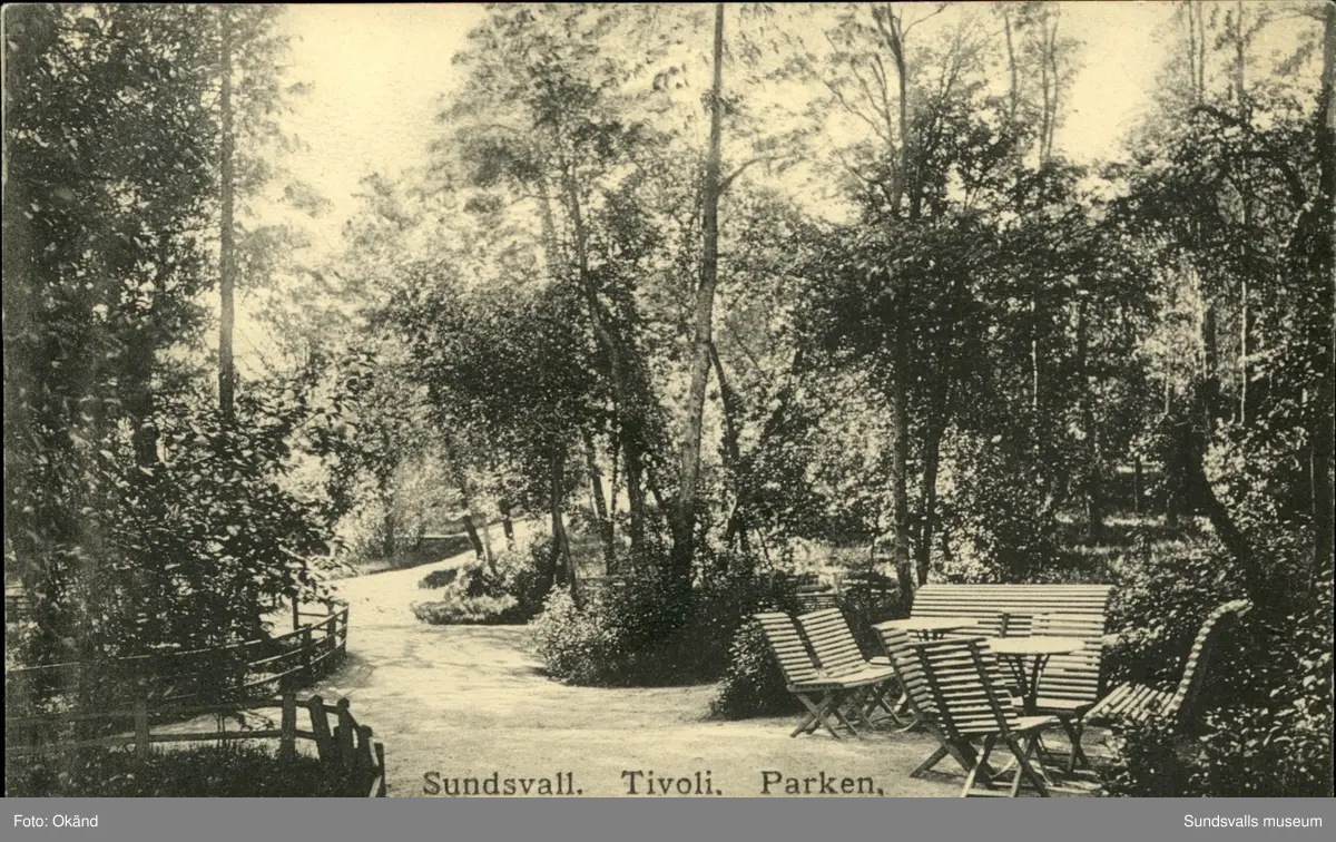 Vykort med motiv över parken vid Tivoli i Sundsvall.