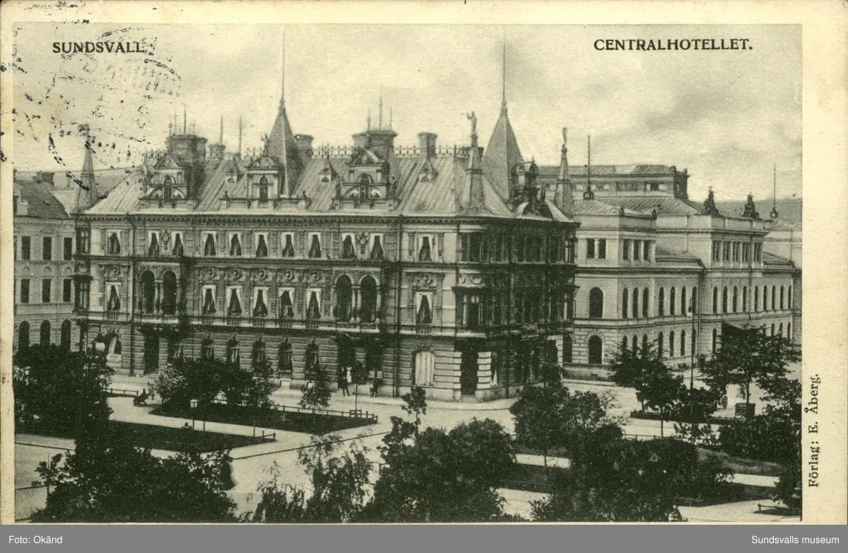 Titel: Vykort med motiv över Centralhotellet i Sundsvall.