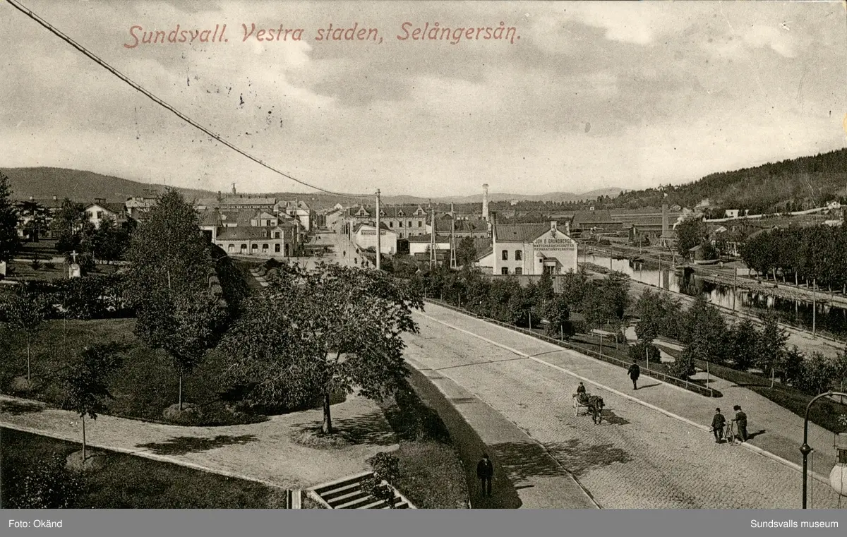 Vykort med motiv över västra Sundsvall.