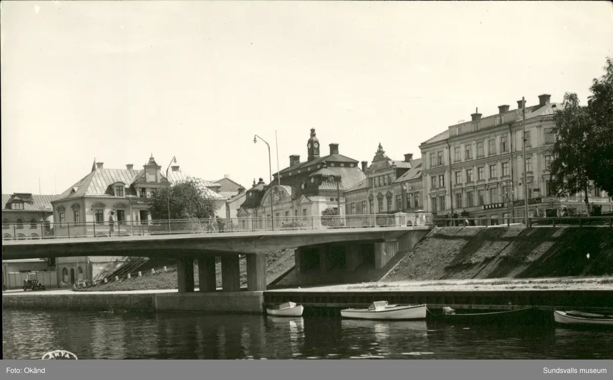 Vykort med motiv av Storbron och Selångersån i Sundsvall.