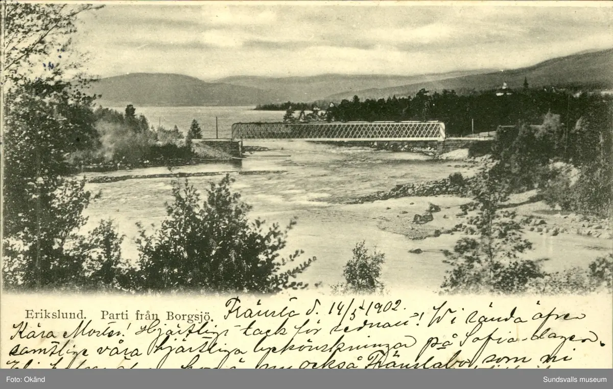 Vykort med motiv över ett parti från Borgsjö i Erikslund.