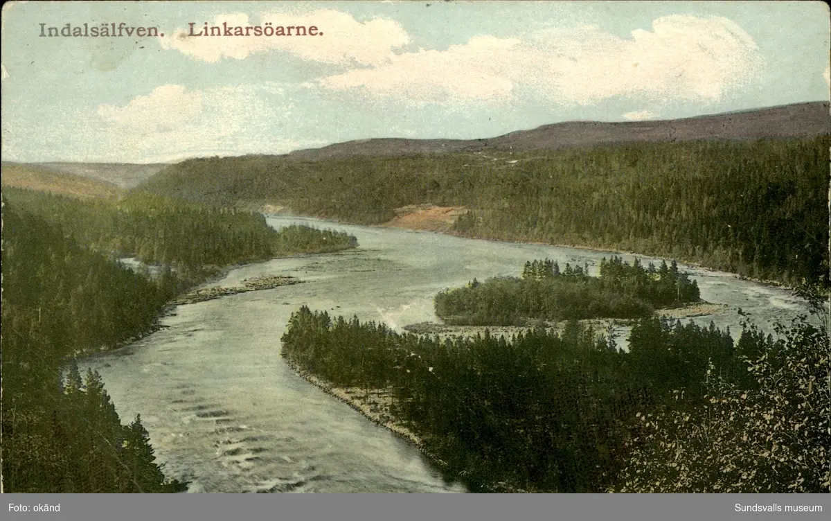 Vykort med motiv över Linkarsöarna i Indalsälven.