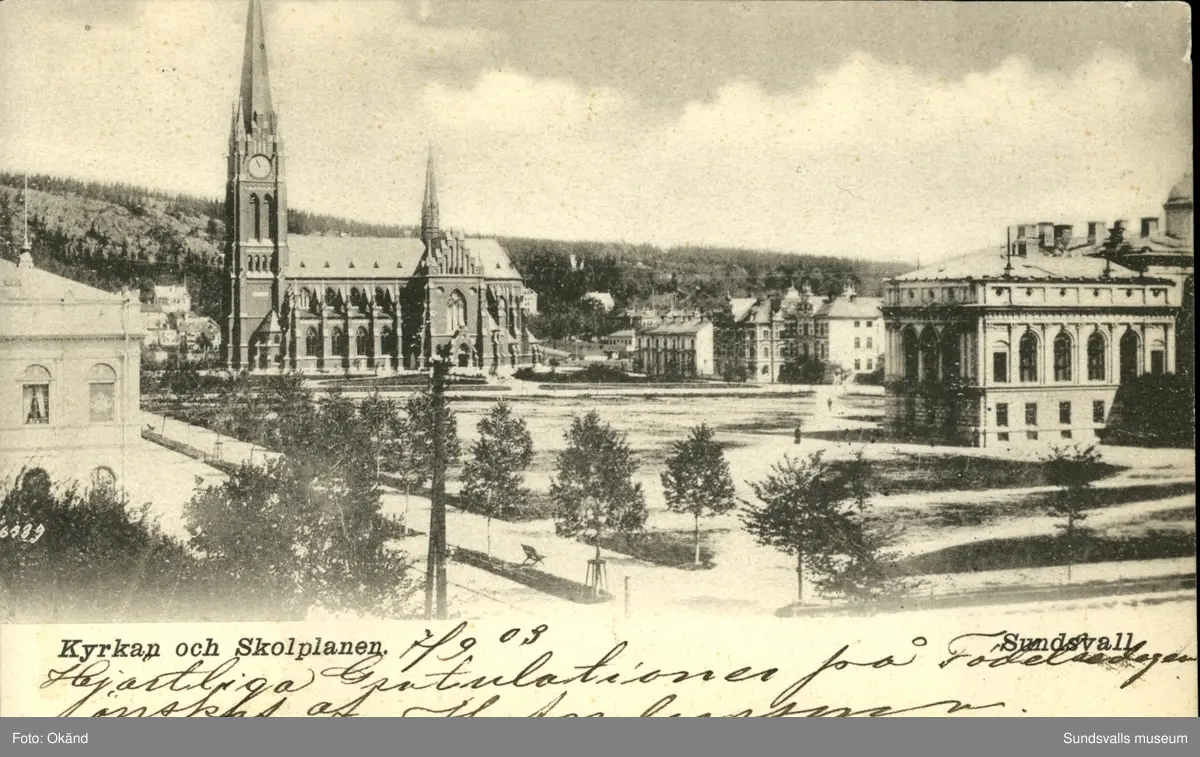 Titel: Vykort med motiv över Gustav Adolfs kyrka.