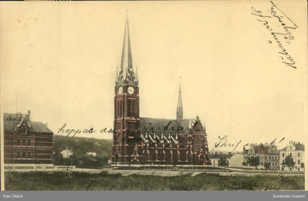 Vykort med motiv över Gustav Adolfs kyrka.
