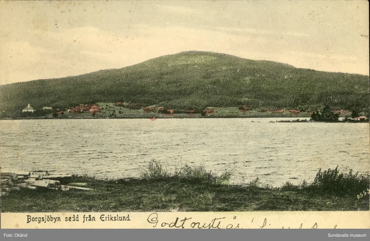 Vykort med motiv över Borgsjöby i Erikslund.