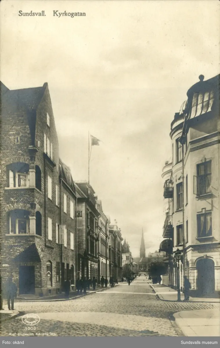Titel: Vykort med motiv över Kyrkogatan i Sundsvall.