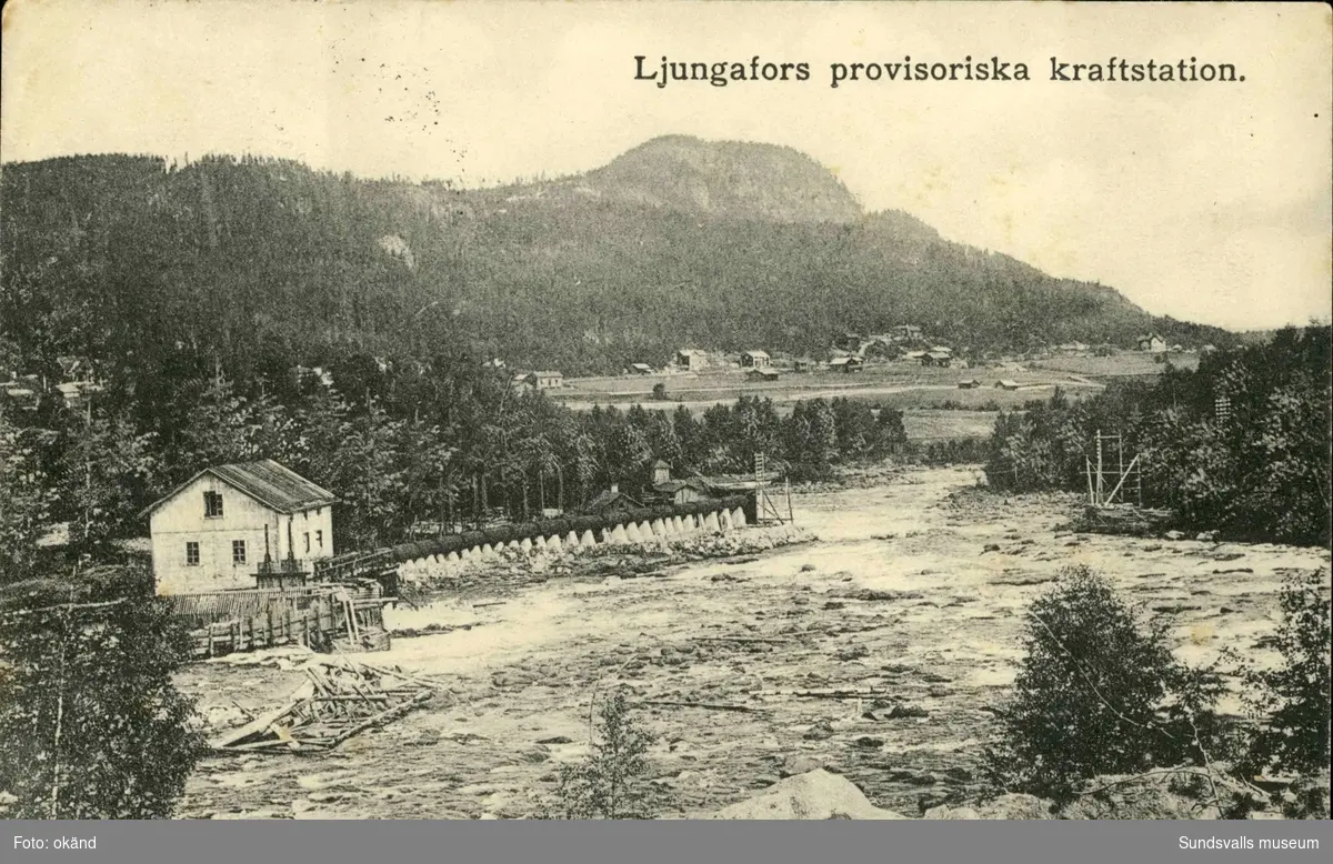Vykort med motiv över Ljungafors provisoriska kraftstation.