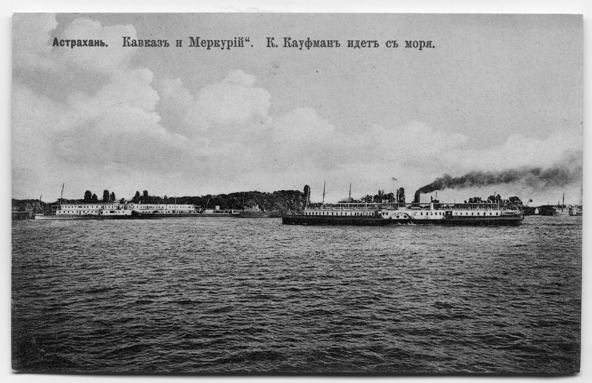 [Rysk text framsidan: Astrakhan. Kaukasus och Merkurius. "K.Kaufman kommer från havet.]