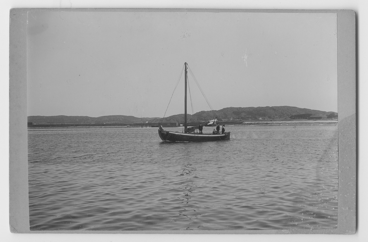 På kuvertet står följande information sammanställd vid museets första genomgång av materialet: Västkusten, Fiskemotorbåt.
