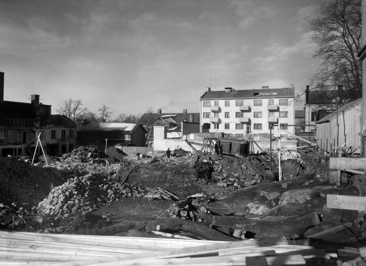 Markarbeten utförda av Skånska Cementgjuteriet inför bygget av fastighet åt Motoraktiebolaget i Herrgårdsgatsbacken. Bilden tagen 1944.