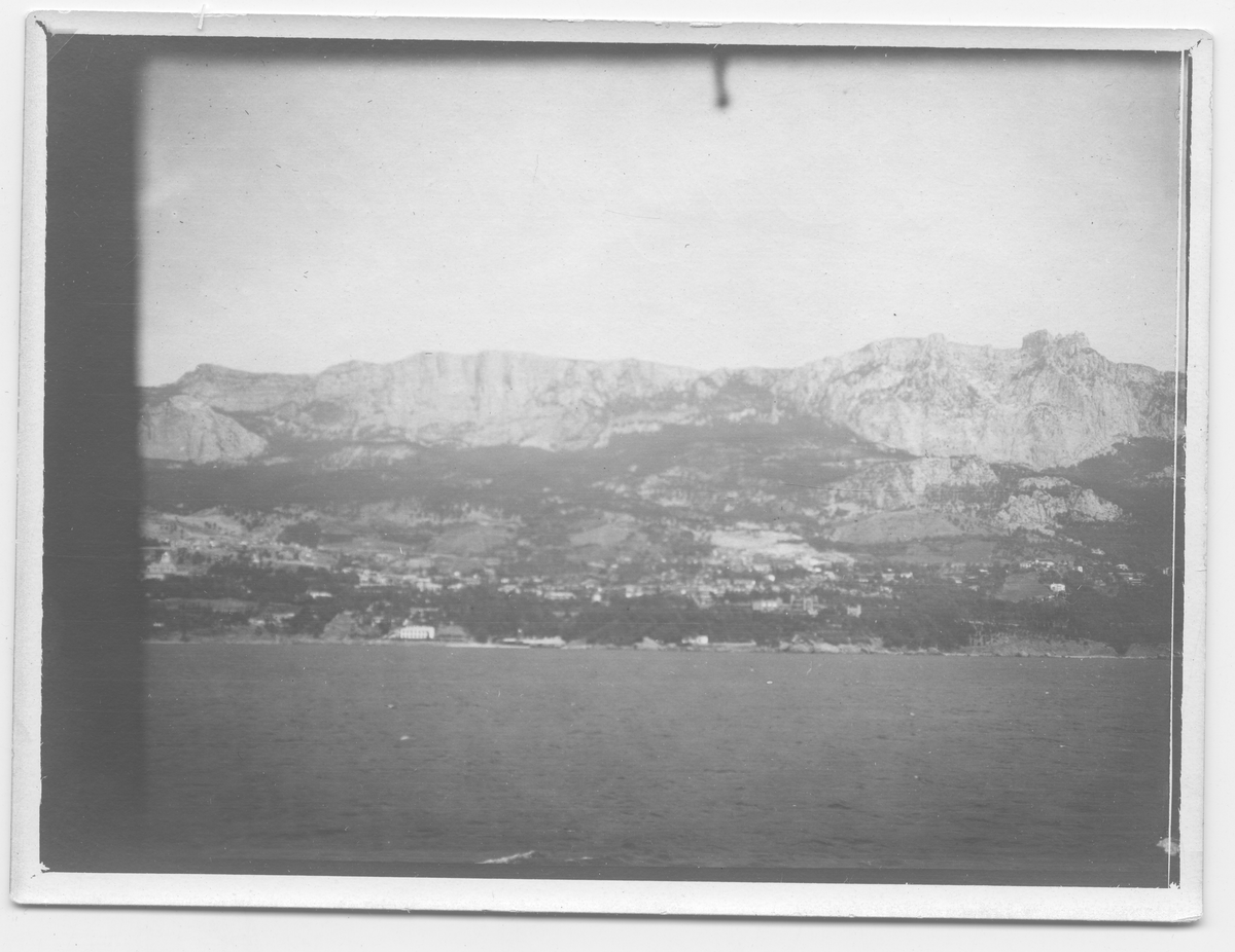 På kuvertet står följande information sammanställd vid museets första genomgång av materialet: Krim. Samhälle taget från sjön.