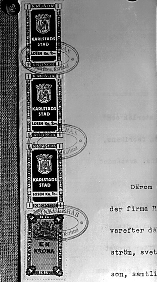 Märken"Lösen Kr. 1:- samt Karlstads stad".