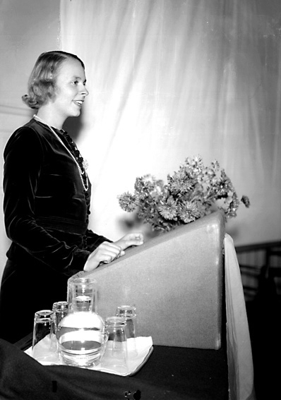 Kvinna i talarstol .